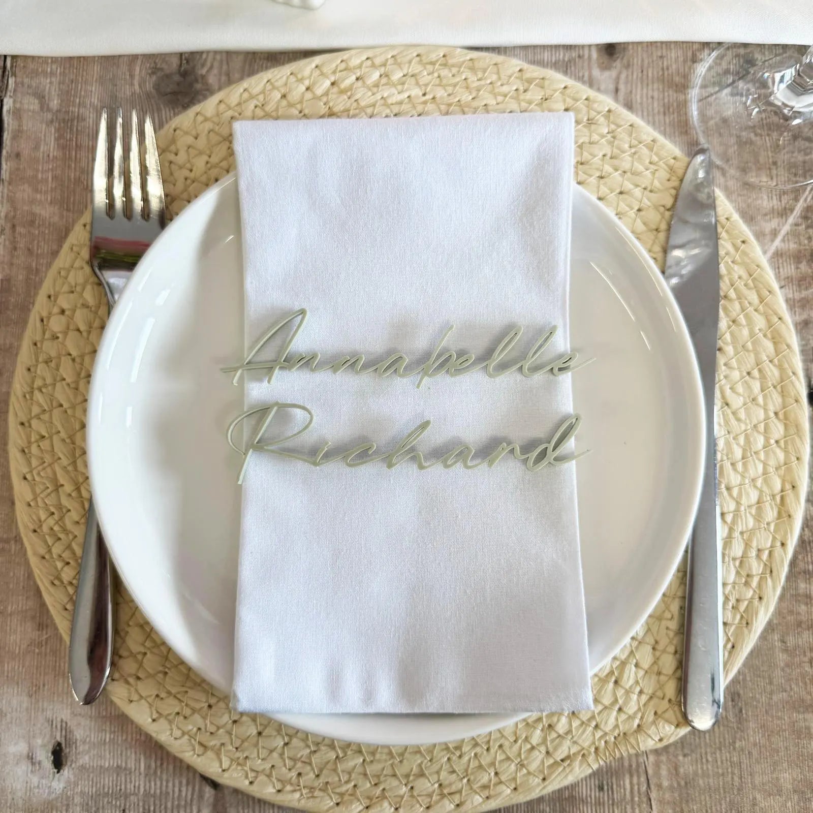 Create a unique and personalised touch to your wedding or event with these acrylic place setting names. It could also be used to personalise any other items, such as a gift box or a photo frame etc. Made from high-quality materials and expertly crafted by the Luck and Luck brand, these place names will add an elegant and sophisticated touch to any table setting. Customisable with names and colours, these place names are perfect for weddings, birthdays or any special occasion. The acrylic material is durable and long-lasting, ensuring that these place names will be cherished for years to come. Add a personal touch to your event with these personalised acrylic place setting names.