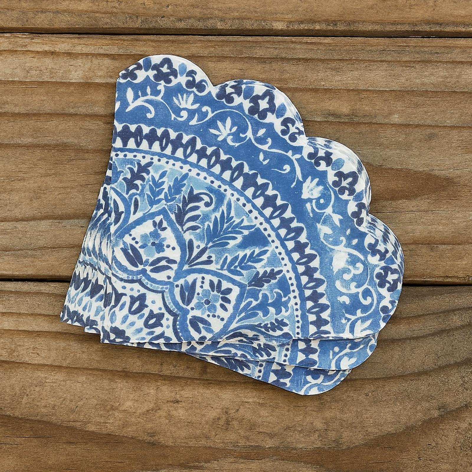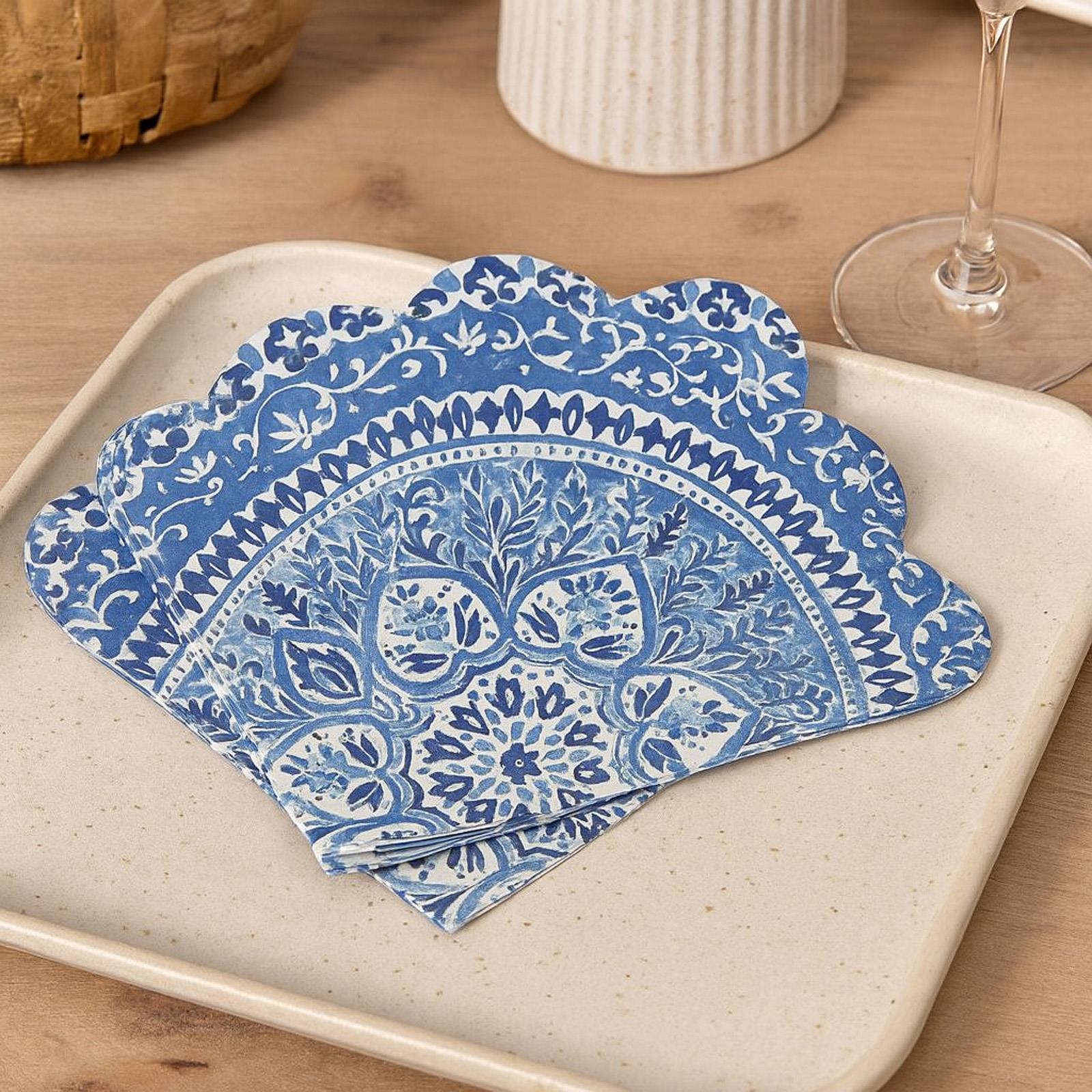 Elegant blue and white scalloped napkins, pack of 20. Perfect for weddings, parties and stylish table settings with a Dolce Vita inspired design.
