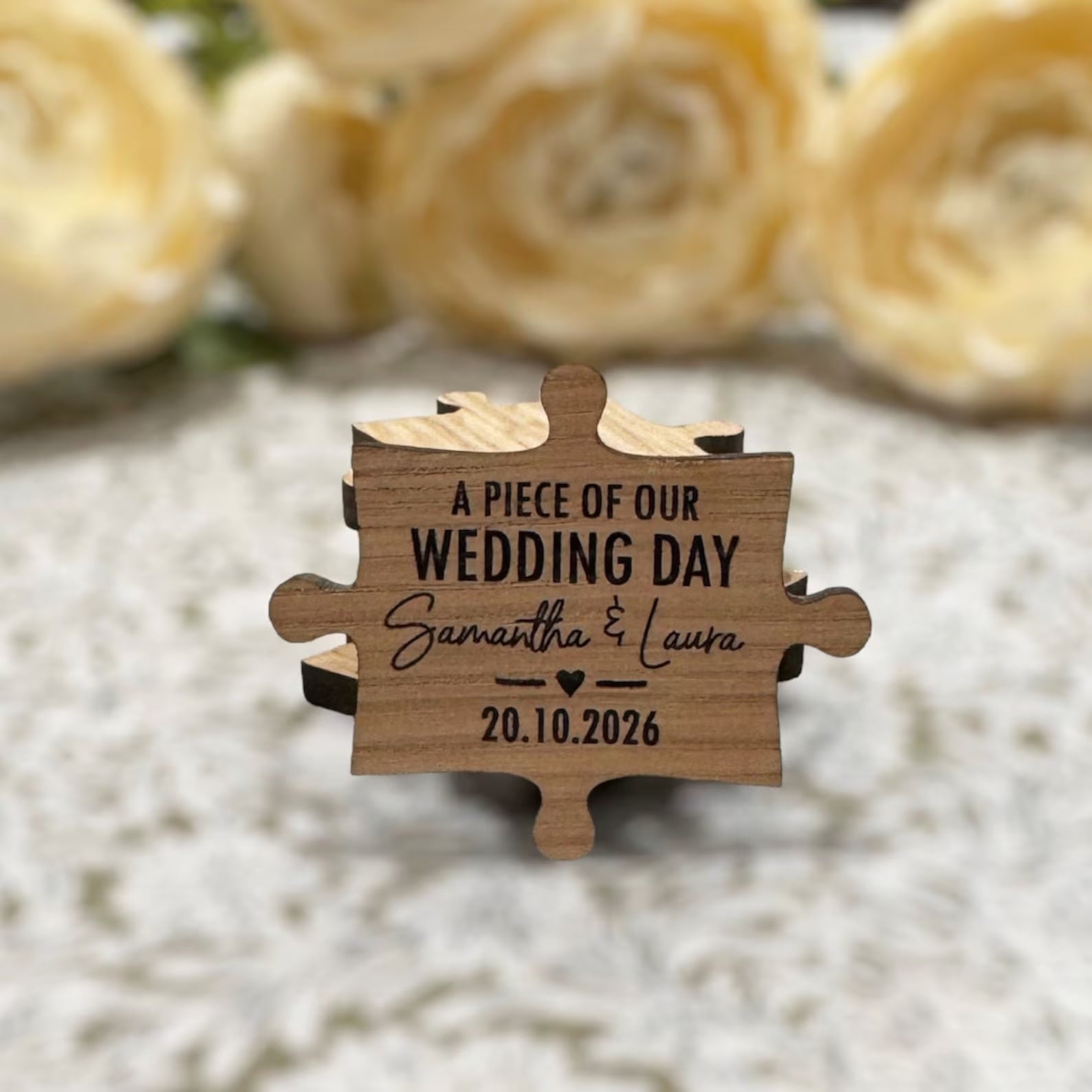 These WEDDING TABLE FAVOURS are small gifts or tokens that couples give to their guests as a keepsake of their wedding. They are personalised with the couples names and date of the wedding.