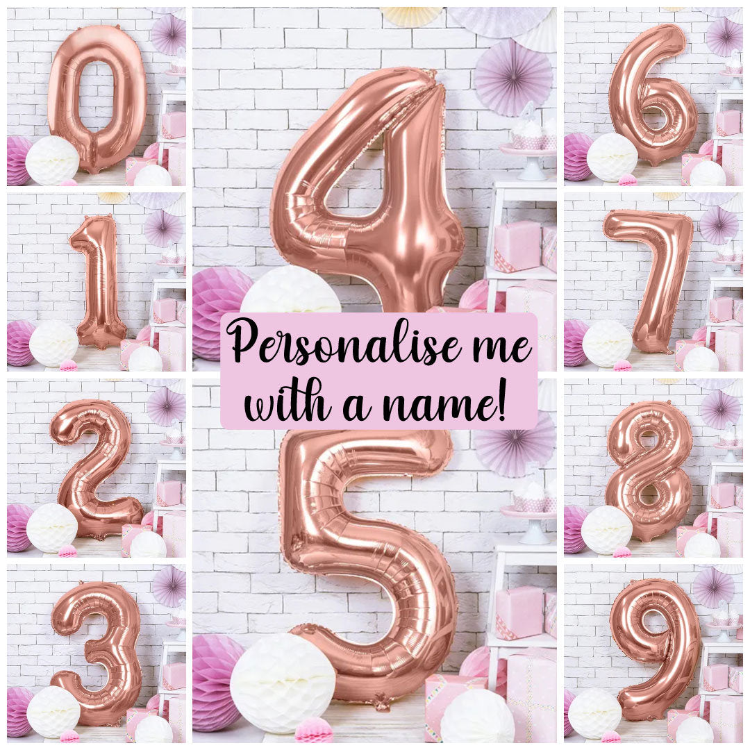 NUMBER BALLOON - These stunning 34"/86cm rose gold number balloons are a great way to add a personal touch to your party decorations. With their glossy finish and easy-to-inflate design, they can be hung or attached to various surfaces using hang tags, glue dots, or tape, making them a versatile and impactful centerpiece. These giant balloons arrive flat for easy storage and can be easily inflated with helium or air, making them convenient to use.