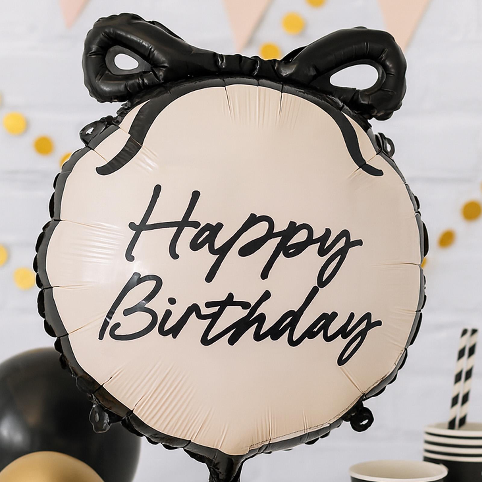 Make every birthday celebration feel extra special with this elegant cream and black Happy Birthday foil balloon. Designed in a classic round shape, it’s a versatile decoration that works beautifully across both fun children’s parties and more refined adult gatherings.