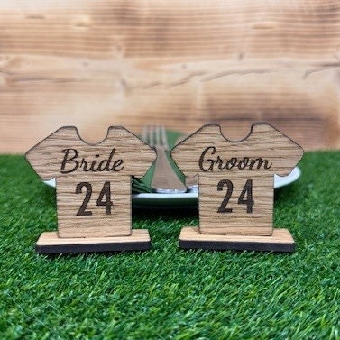 These personalised football shirt place names will look amazing at a football theme wedding or party where your guests can take them away as a favour afterwards to remember your special day. Or perhaps to use them at a dinner party to mark your football teams promotion.