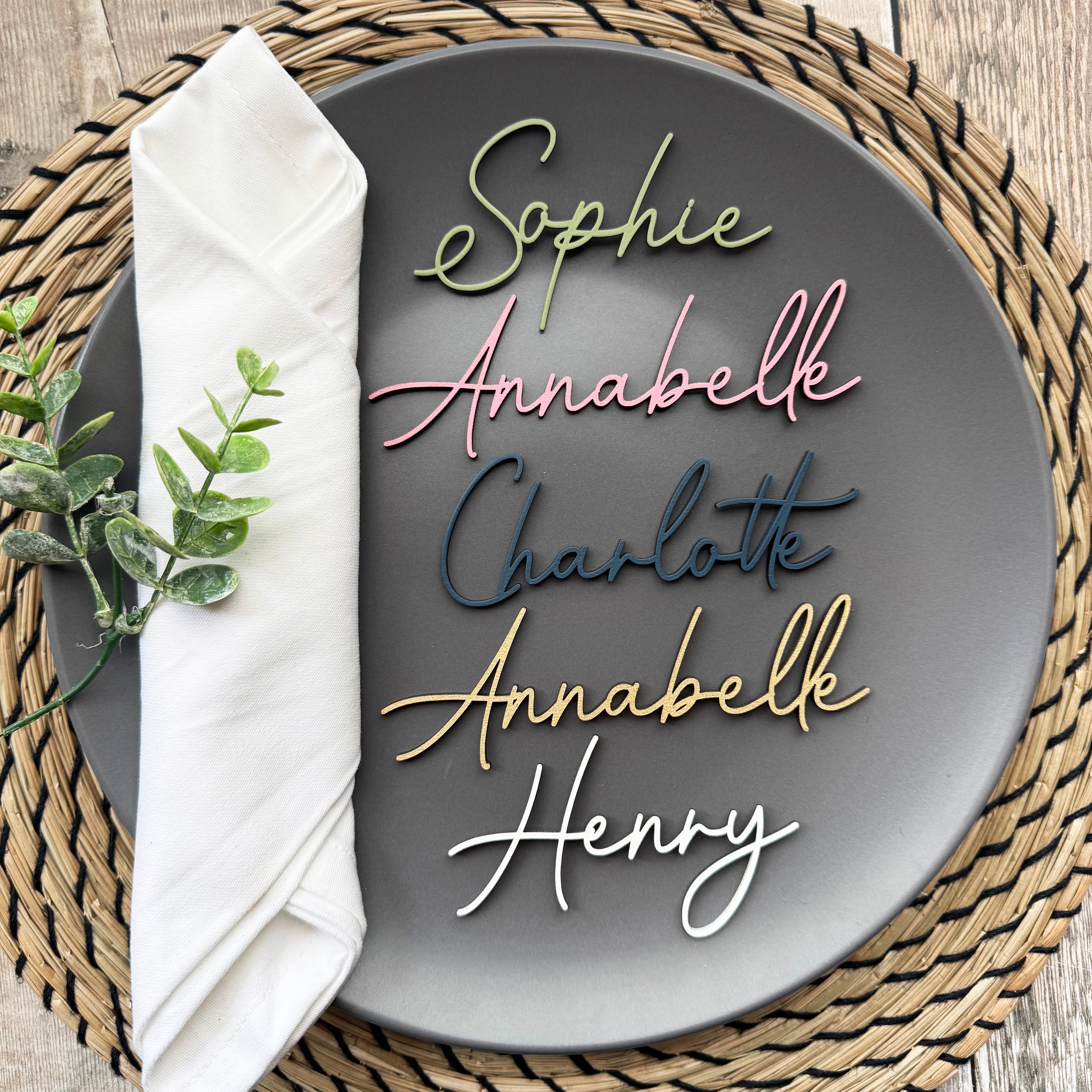 Create a unique and personalised touch to your wedding or event with these wooden name place setting names. It could also be used to personalise any other items, such as a gift box or a photo frame etc. Made from high-quality materials and expertly crafted by the Luck and Luck brand, these place names will add an elegant and sophisticated touch to any table setting. Customisable with names and colours, these place names are perfect for weddings, birthdays or any special occasion. The wood material used will ensure that these place names will be cherished for years to come. Add a personal touch to your event with these personalised wooden place setting names.
