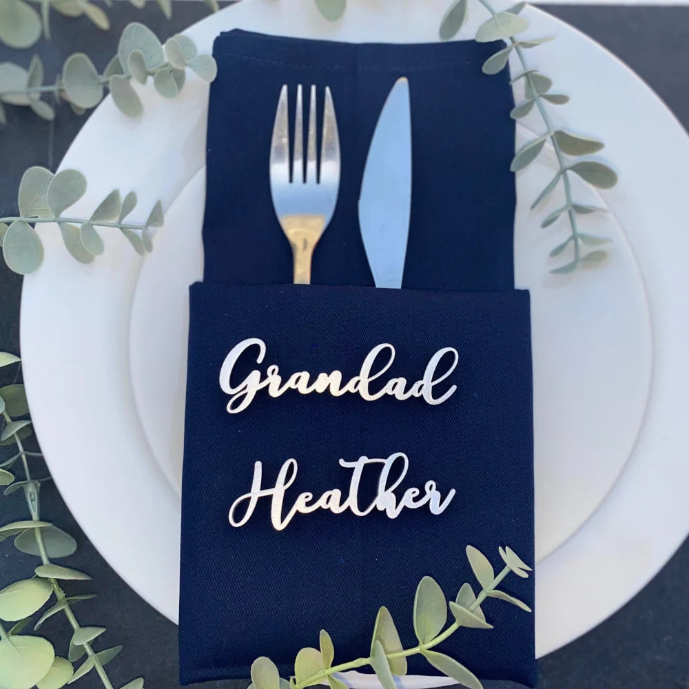 Create a unique and personalised touch to your wedding or event with these wooden name place setting names. It could also be used to personalise any other items, such as a gift box or a photo frame etc. Made from high-quality materials and expertly crafted by the Luck and Luck brand, these place names will add an elegant and sophisticated touch to any table setting. Customisable with names and colours, these place names are perfect for weddings, birthdays or any special occasion. The wood material used will ensure that these place names will be cherished for years to come. Add a personal touch to your event with these personalised wooden place setting names.